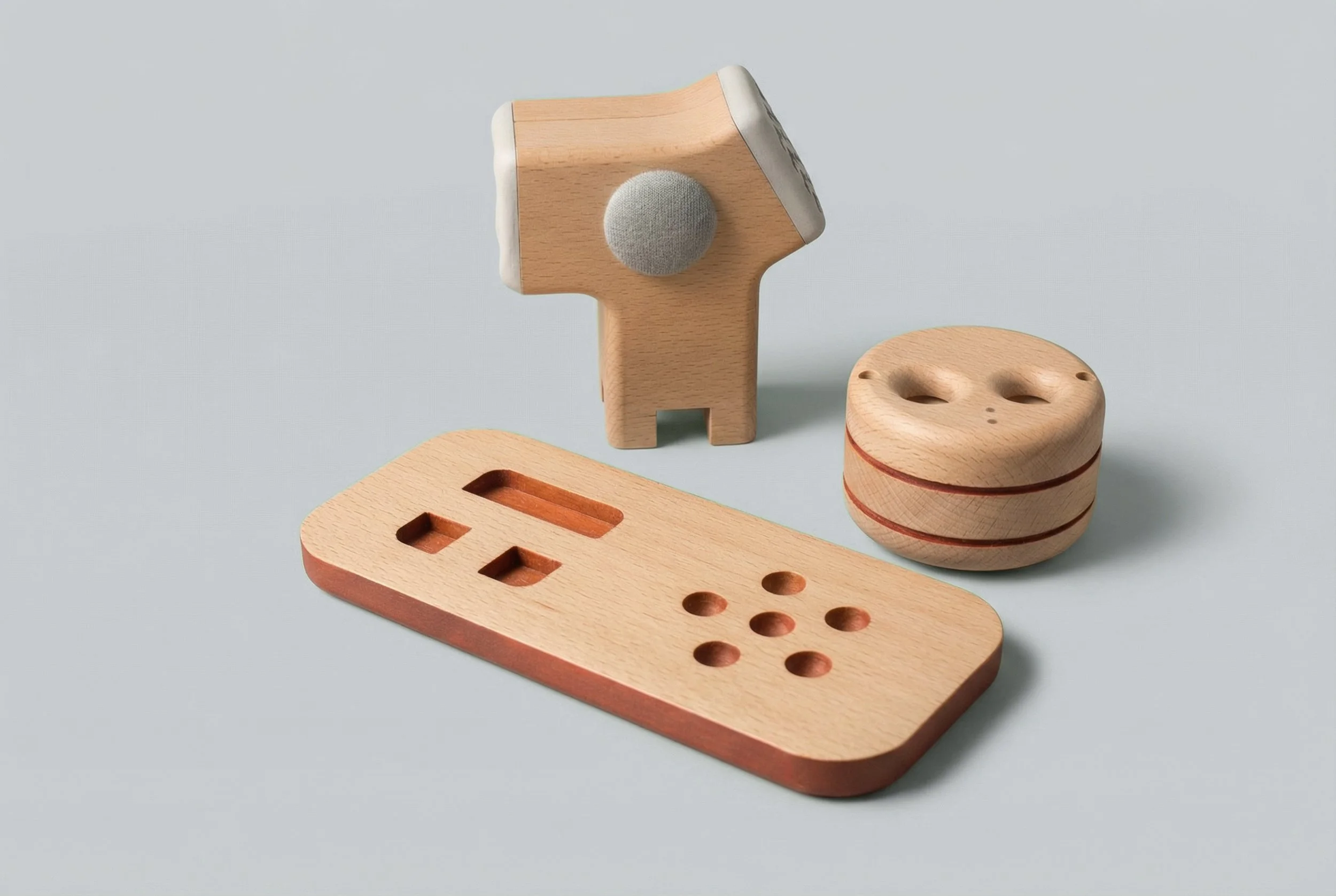 Developed specifically for children with diverse learning and developmental needs, MISC. Toys is a duo of wooden playthings with a hidden magical behaviour. A pair of interactive companions that empower exploration through a series of hand gestures, necessary to bring them to life.