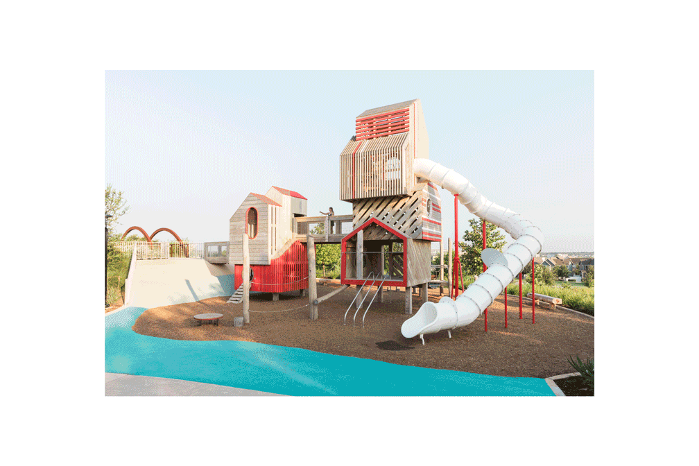Austin is considered to be the most eclectic and culturally vibrant city in Texas and one of the trendiest places in the United States. For a residential area on a hill with exceptional views over the city’s skyline, a visually striking, child-centric outdoor space is being developed. And it has a whimsical playground in it!